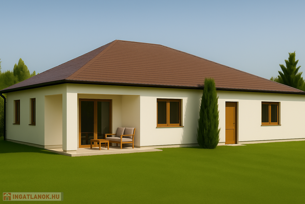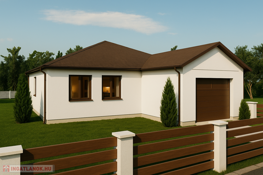 Újfehértó központjához közel, kiváló lokációval, a Debreceni úton új építésű, modern, hőszivattyús, EGYSZINTES, Nappali + 3 szobás családi ház leköthető.